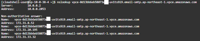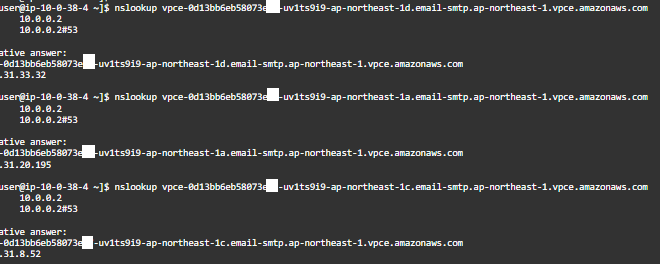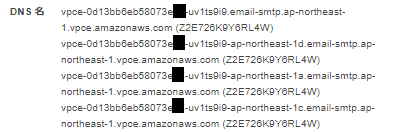 ということで、これらのDNS名はケースバイケースで使い分けしましょう。1つのAZで障害が発生した時に無事なAZにあるVPCエンドポイント経由でメールを送信したい場合は、一番上にあるリージョン単位のVPCエンドポイントを使い、送り先を固定したい場合は2番目以降のDNS名使えばいいでしょう。