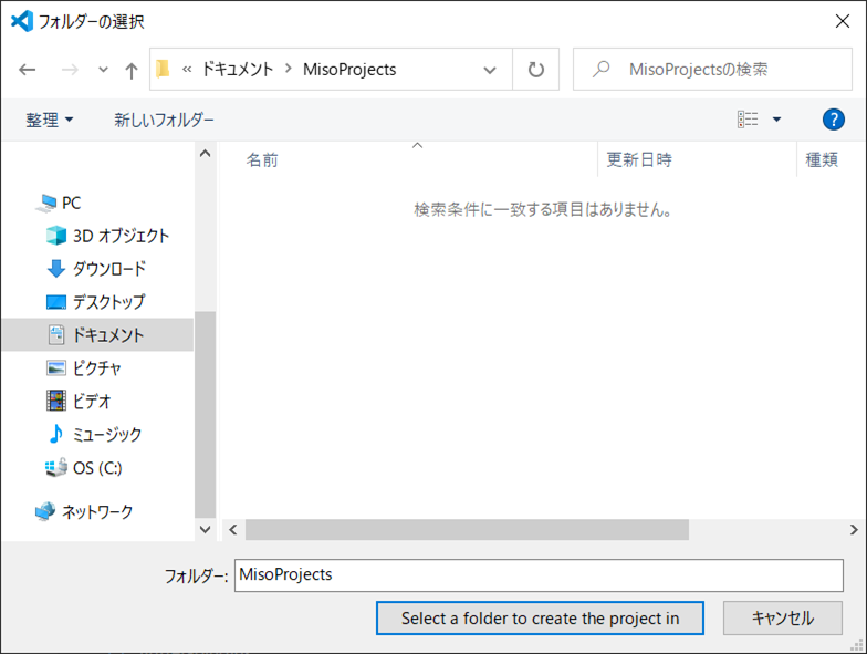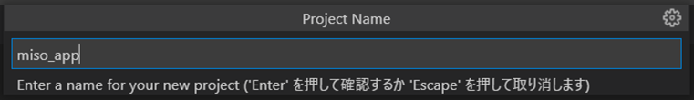 プロジェクトを保存するフォルダを選択し、プロジェクト名(ここではmiso_app)を入力します。