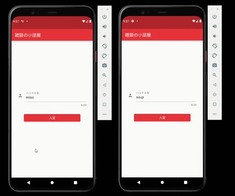 画面もDataStoreにフォーカスするために入室画面(認証なし!)と雑談画面の2画面です。