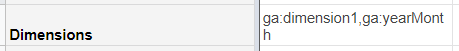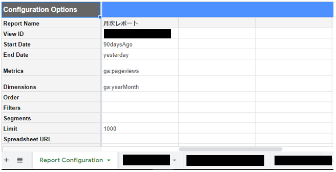 Google Analyticsにてカスタムディメンションを使用していて、その切り口で集計をしたい場合、作成した「Report Configuration」シートの「Dimension」にて以下のように追記します。