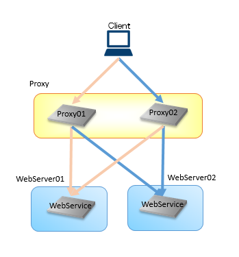 ・通常はWebServer01のWebWerviceへアクセスし、WebServer01の障害時にWebServer02のWebService接続を切り替えます
