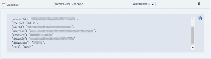作成された資格情報の[資格情報の表示]をクリックすると、内容が表示されます。