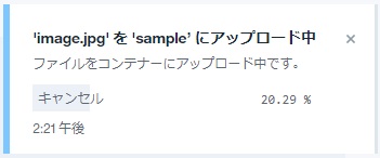 コンテナー内のリストに青枠が表示されるようにファイルをドラッグ&ドロップするとアップロードが始まります。