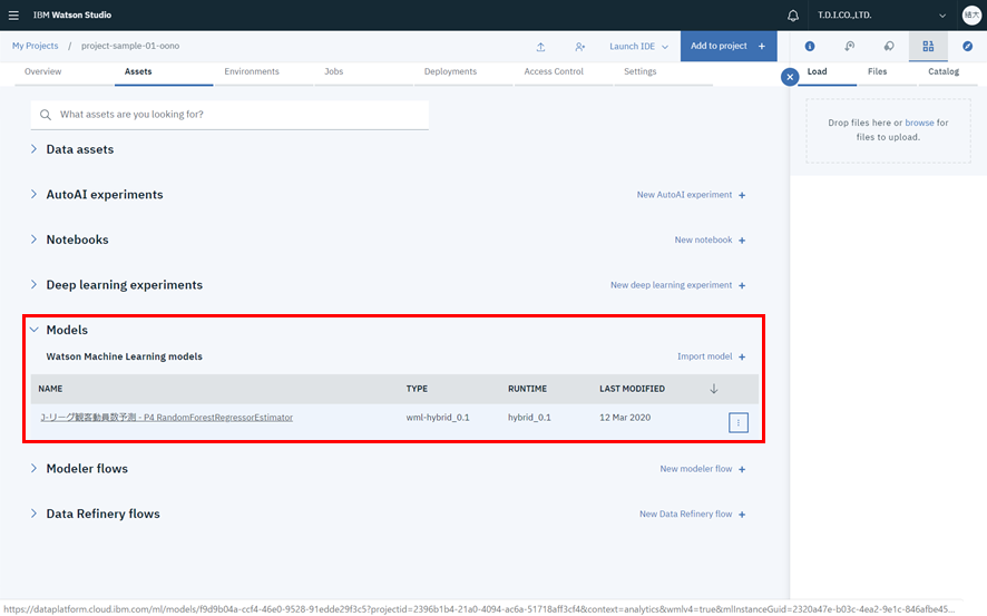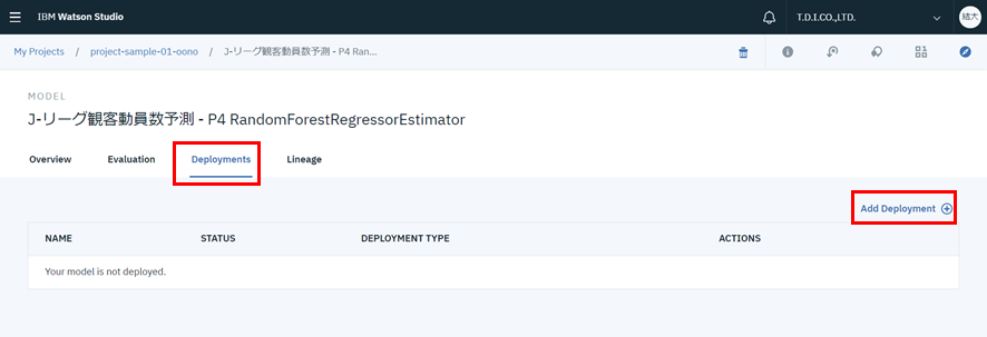 2. モデルの名前と使用するIBM Watson Machine Learningサービス・インスタンスを選択して保存します。