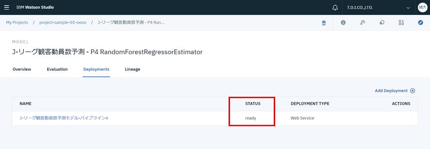 6. STATUSが「ready」になれば、デプロイの完了です。