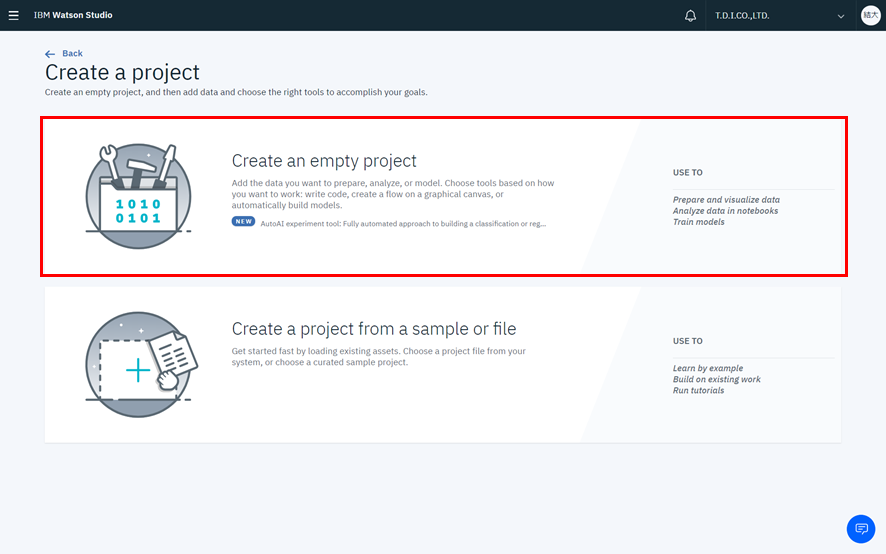 環境の準備ができましたら、最初にIBM Watson StudioのProjectを作成します。