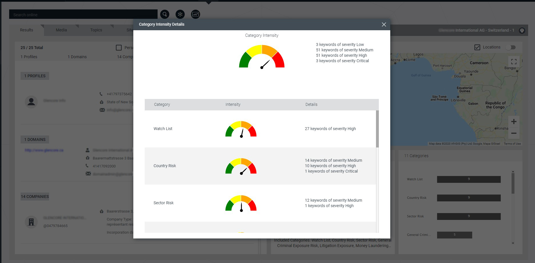 次に分析機能を試してみます。分析機能では特定の人物や法人のリスク判定のほか、関連するキーワードや繋がりのある人物の情報を視覚的に確認することができます。