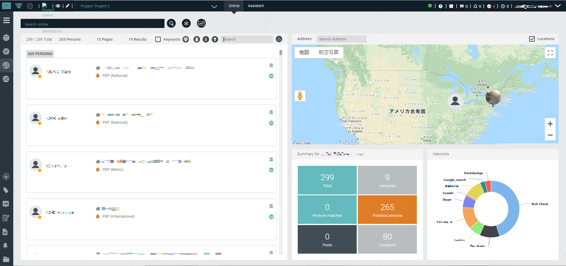 また、制裁リストだけでなく、PEPs(Politically Exposed Persons 政府等において重要な地位を占める人物)を確認することもできます。