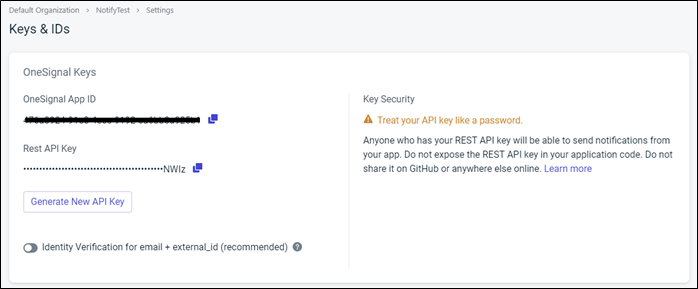 図2 OneSignalで発行されるAppIDとRestAPIKey