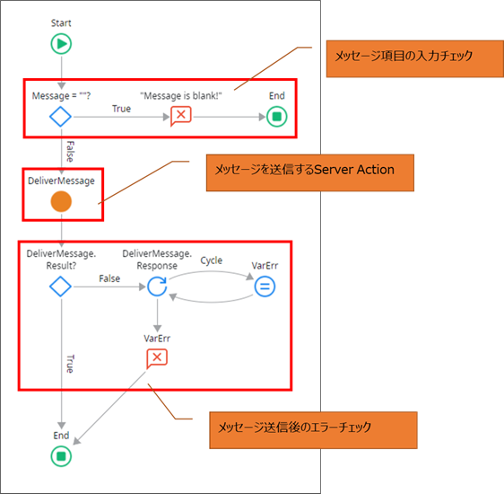 次にServer Actionを作成します。ロジックは図8のようになります。