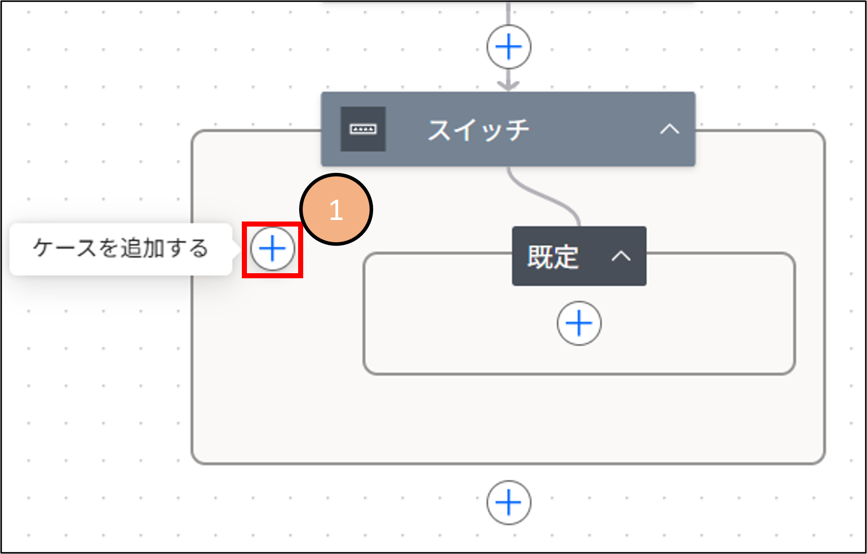 ①「スイッチ」アクションの左側にある「ケースを追加する」ボタンをクリックします。ケースが新規追加されます。