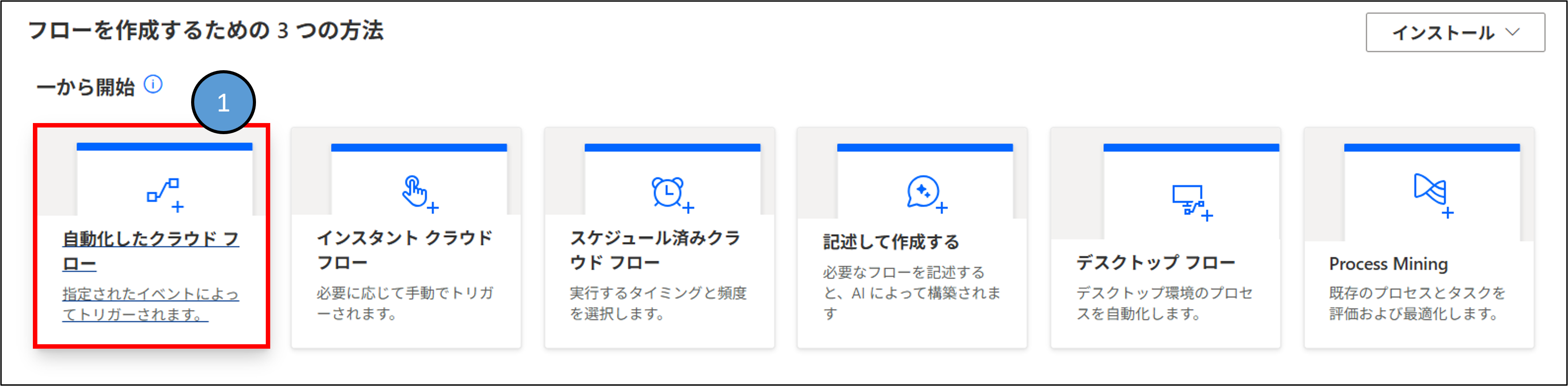 ①「一から開始」の【自動化したクラウドフロー】を選択します。