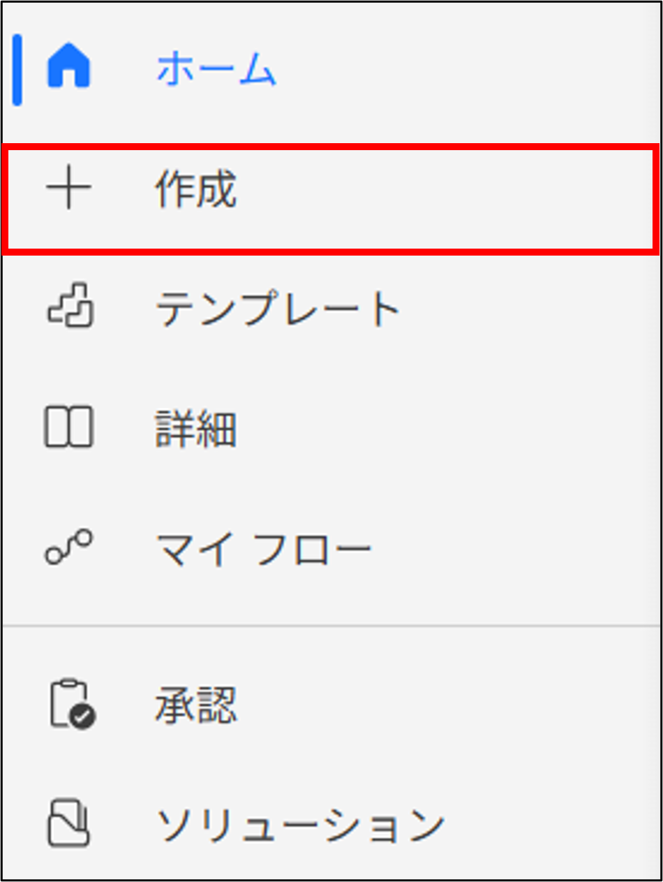 1. Microsoft Power Automateのホーム画面を開き、左メニューの【作成】をクリックします。