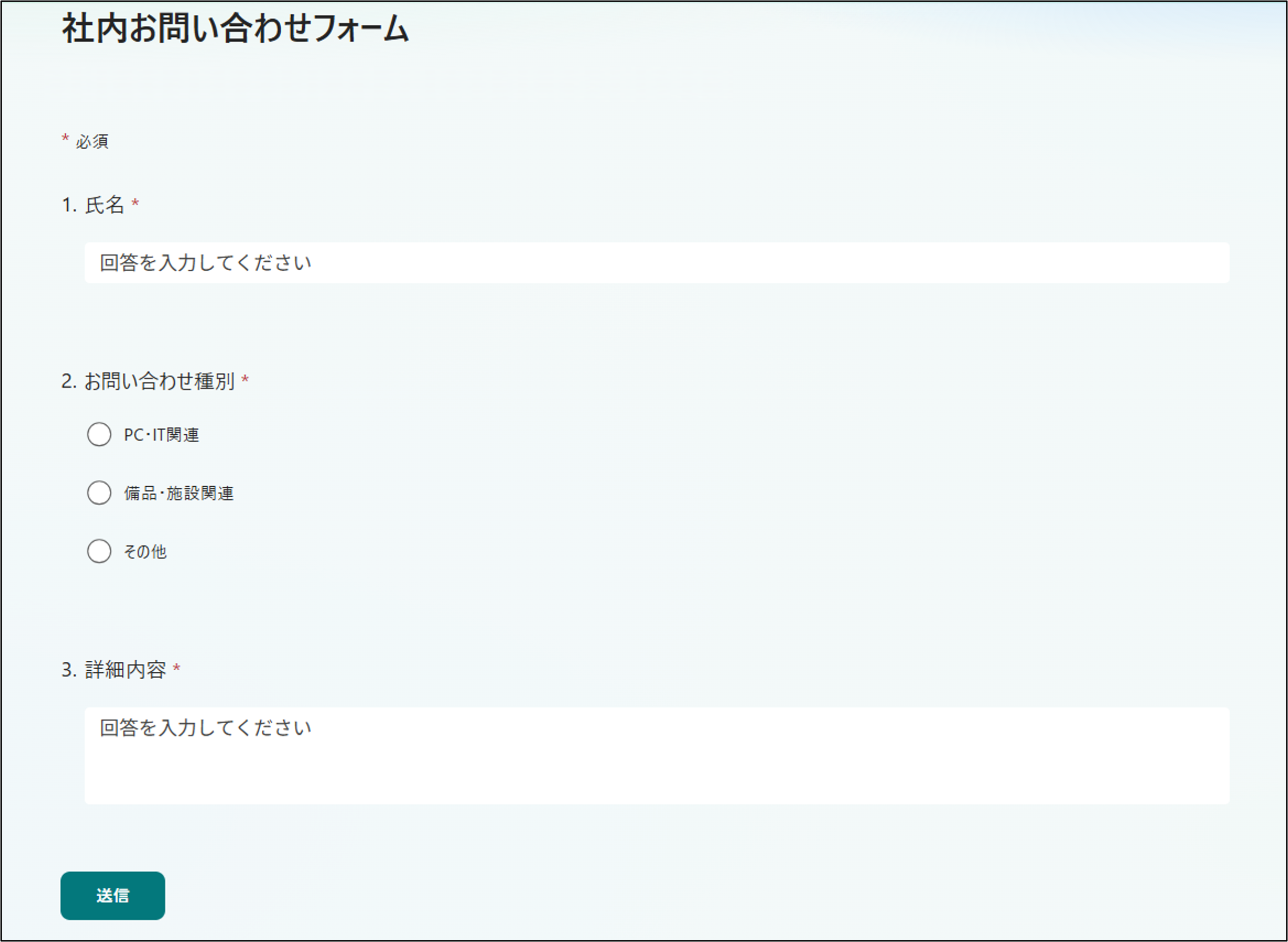 図2:Microsoft Forms「社内お問い合わせフォーム」例