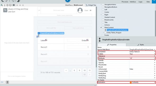 WebScreenに任意のTableRecordsを配置し、同じContainer内にjQuerySortableを配置します。